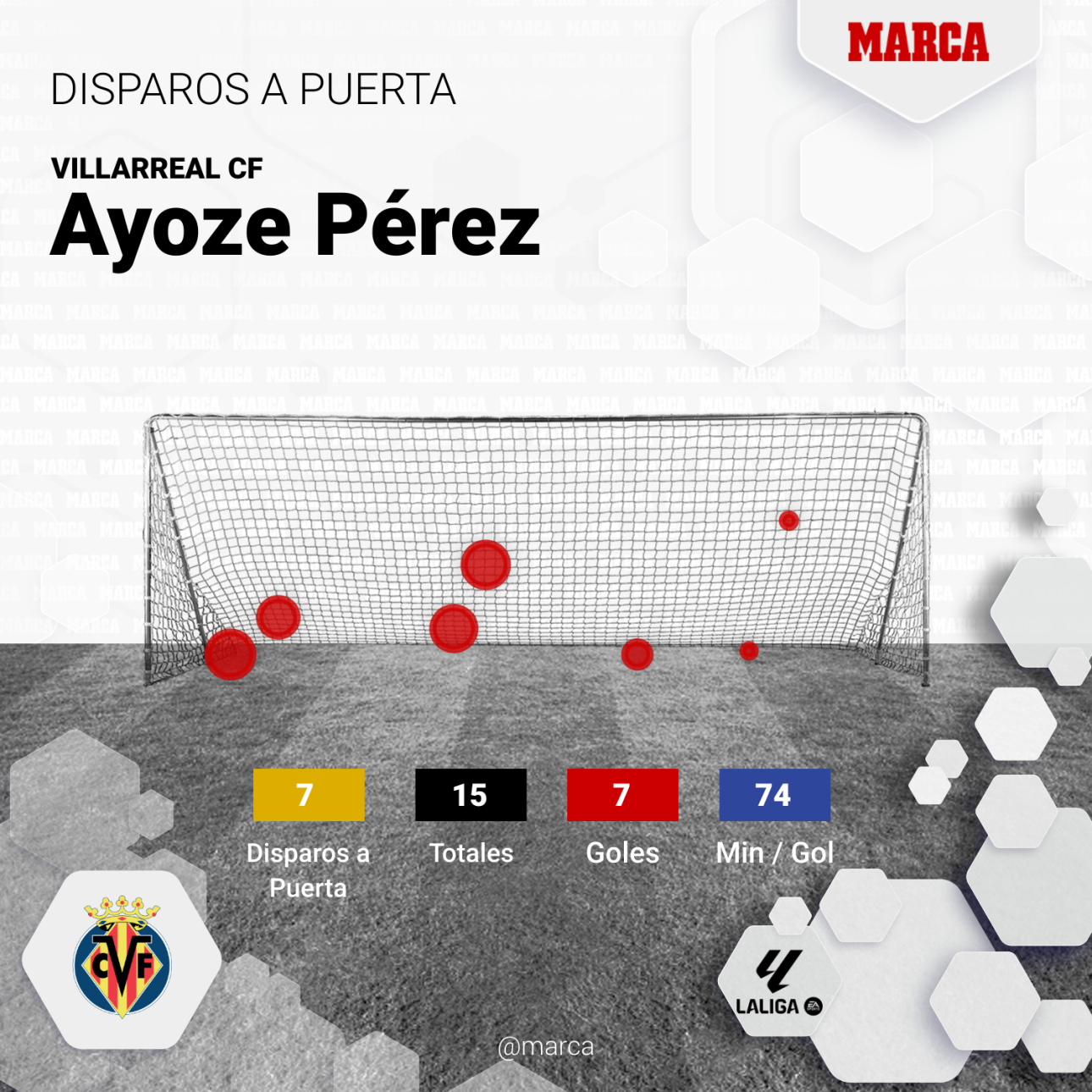 El espectacular esprint final de Ayoze la pasada temporada (cinco goles en las últimas siete jornadas) está teniendo continuidad en el primer cuarto de la 24-25. Lleva once en doce partidos oficiales y pleno de efectividad en LaLiga, con siete dianas en otros tantos remates entre los tres palos. No es de extrañar, por tanto,