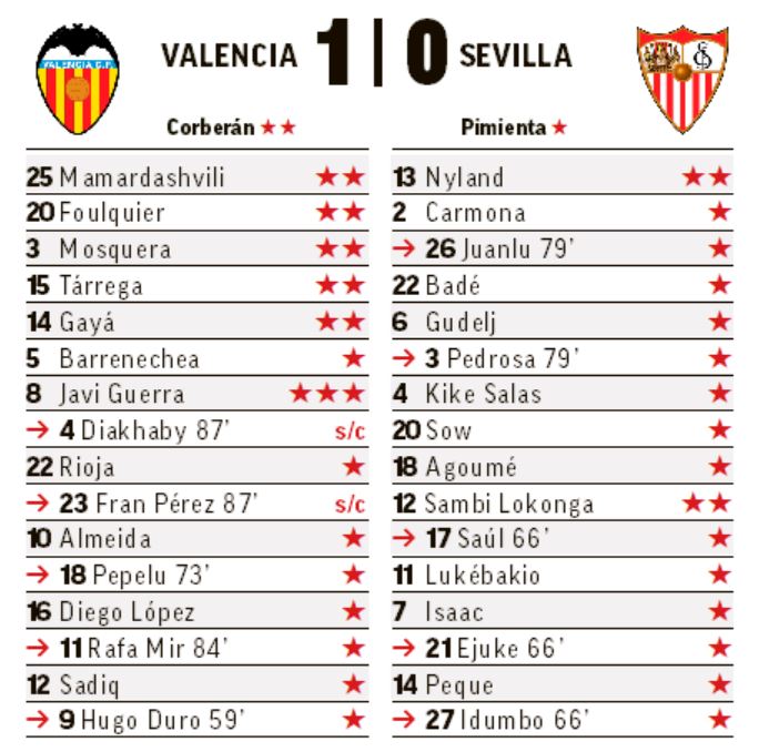 Sexta jornada consecutiva en la que puntúa un Valencia que ve alejarse el fantasma del descenso. Sobresaliente partido de Javi Guerra (12 puntos Fantasy en el Top MARCA). Mamardashvili, que venía de sumar 13 puntos en el Bernabéu, repite dobles dígitos (10).