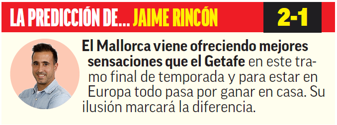 Dos equipos llamados a pelear por lo mismo afrontan dos finales bien distintos. El Mallorca intenta subirse al último tren europeo haciendo valer su fortaleza en Son Moix mientras que el Getafe pretende huir de cualquier carambola que acabe con los de Bordalás en la cuerda floja de cara a la última jornada. Dos equipos con un estilo similar que respiran oficio y practicidad por los cuatro costados.