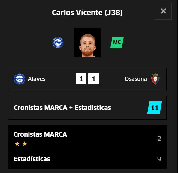Empate a 11 puntos Fantasy en el Top MARCA entre Carlos Vicente y Catena. El defensa osasunista supera los 200 puntos y su media es de 5,7. Gran temporada la suya. Ocho puntos sumó Sedlar (365.000).