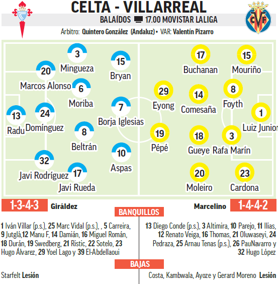 El Celta convence, pero no gana. Algo que sí consigue, y de manera holgada, el Villarreal de Marcelino. El equipo, seguramente, más en forma del campeonato pone a prueba su estado de gracia en Balaídos, territorio hostil para los de Marcelino. Dos apuestas atractivas, dos equipos que les gusta ser protagonistas, con objetivos bien distintos.