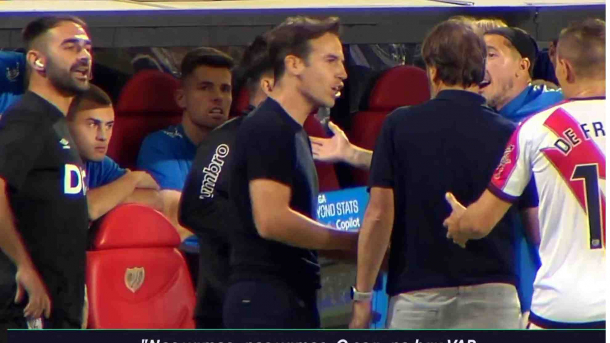 Iñigo Pérez estaba muy caliente después de que Mateo Busquets señalara penalti de Chavarría sobre Lamine Yamal en la recta final de la primera parte del Rayo-Barcelona. La decisión del árbitro, unido al problema que hubo con el funcionamiento del VAR durante el partido, hizo explotar al técnico, que después del partido pidió perdón por