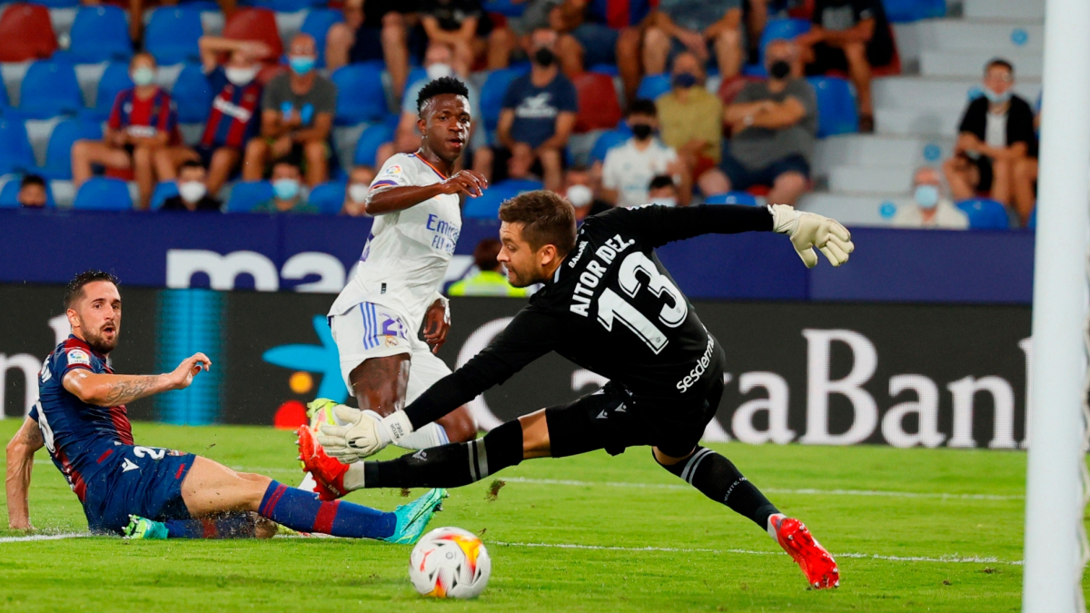 Sin embargo, en la segunda jornada de Liga ante el Levante en el Ciutat de Valencia, Ancelotti mantuvo su apuesta por el lujoso tridente Bale-Benzema-Hazard. Pero el plan empezaba a chirriar. De hecho, el técnico tuvo que tirar de Vinicius para sacar de un apuro al equipo, que perdía 2-1 en el momento que entró el brasileño al campo. Vinicius marcó el 2-2, el Levante se volvió a adelantar 3-2 y otra vez Vinicius empató a cinco minutos del final. Más allá del doblete, el brasileño fue un huracán sobre el campo y revolucionó por completo el ataque madridista. El Madrid sin él y con él fue tan distinto que Ancelotti no lo dudó.
