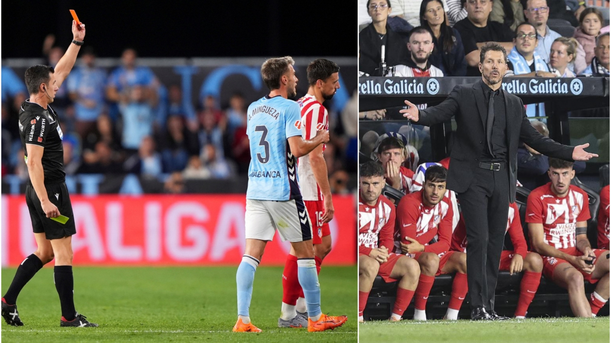Según captaron las cámaras de Movistar, el entrenador del Atlético le dijo al árbitro que era un «caradura» por expulsar a Lenglet. El central francés había visto la primera cartulina en el minuto 25 por un agarrón sobre Jutglà que cortó una contra del Celta. La segunda fue en el 40′ por el mismo motivo y con el mismo protagonista celeste. Sin embargo, Simeone consideraba que esa acción no merecía el castigo de una amarilla y la consiguiente roja.