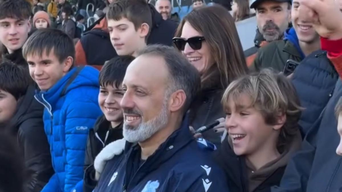 Matarazzo ha sido puntual y a las 11.30 horas ha encabezado al staff y los futbolistas a la hora de saltar al césped de Zubieta, cuya grada llevaba llena desde más de 30 minutos antes, con más de 1.000 personas entre las que se han podido sentar en ella y las que han estado de pie alrededor del campo. La pasión txuriurdin no entiende de crisis y la ovación ha sido grande por parte de unos seguidores que demandaban más días con las puertas abiertas como el de hoy y no sólo uno y por ser Navidad.