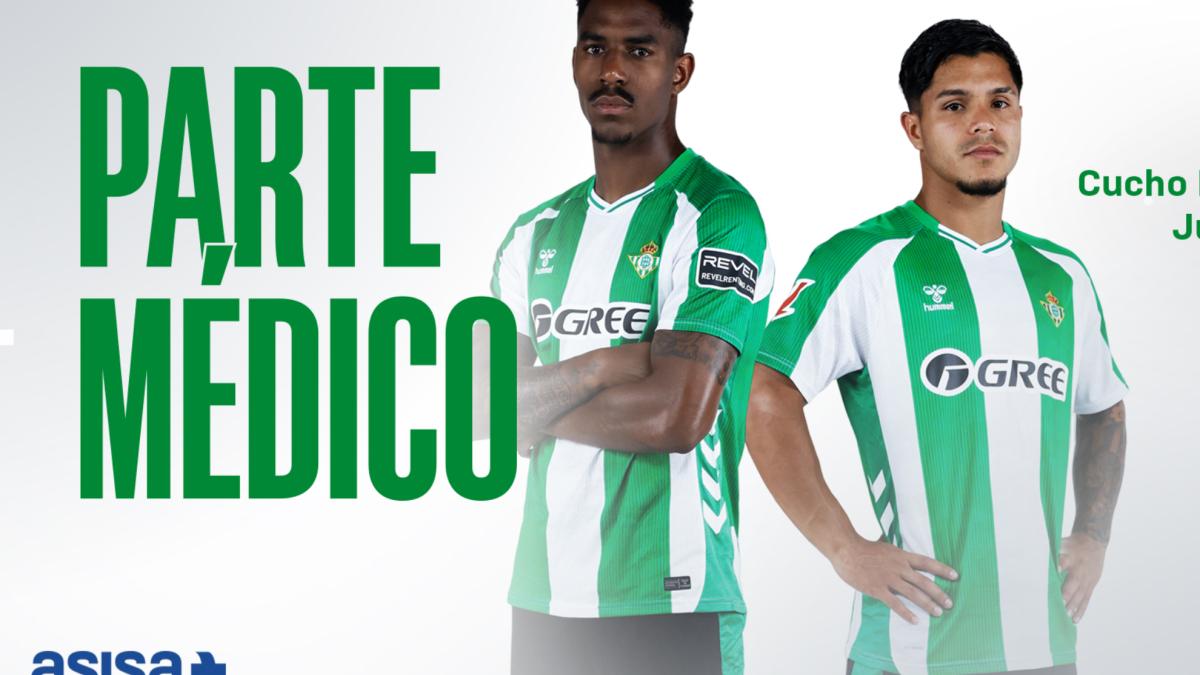Los servicios médicos verdiblanco han dictaminado que el delantero colombiano sufre una lesión miofascial posterolateral del recto anterior izquierdo, mientras que el lateral dominicano padece una lesión miofascial de isquiotibial izquierdo. No se establece un plazo de recuperación y «en ambos casos, su recuperación al grupo dependerá de su evolución», pero se espera que el Cucho esté entre tres y cuatro semanas fuera y Junior, un mes, aproximadamente.